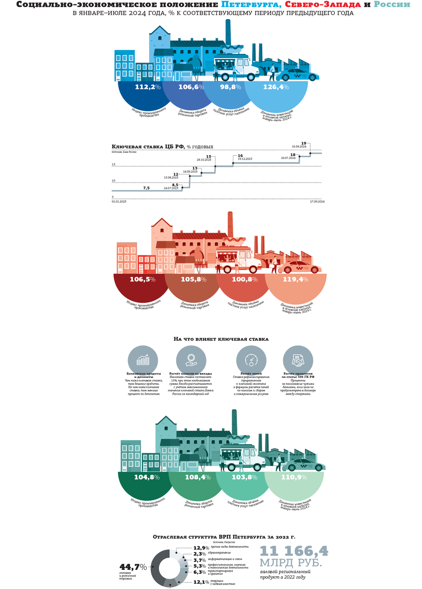 Думаю, что рост ключевой ставки на 1% не скажется так резко, как, допустим, если бы она была 8%, а стала 20%. Учитывая темпы роста, которые сейчас заложены в стратегии развития промышленности Петербурга, отрасль в текущем состоянии может выстоять и расти. Если это не будет продолжаться долго, думаю, она справится. Но, если ставка будет повышаться и дальше, выстоять будет сложнее, потому что тяжелее будет искать средства для развития.
