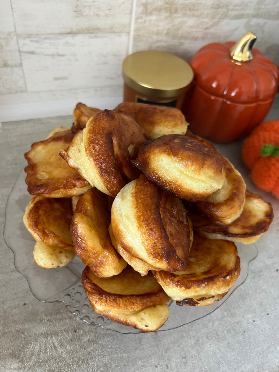 Ингредиенты: Яйца-2 шт. Сахар-3 ст.л. Соль-0,5 ч.л. Кефир-1 стакан Мука-250 гр. Сода- 1/4 ч.л. Растительное масло для жарки Способ приготовления: Взбить венчиком яйца, соль и сахар. Добавить кефир, хорошо перемешать. Поставить на медленный огонь, греть смесь помешивая, ждём когда смесь станет чуть теплой. Снимаем с огня, добавляем частями муку, хорошо перемешиваем. Добавить соду и оставить смесь на 30 минут. Поставить сковороду, налить масло и в хорошо разогретое масло ложкой выкладывать тесто. Жарить с двух сторон до золотистой корочки. Оладья получаются очень пышными и вкусными! Приятного аппетита!