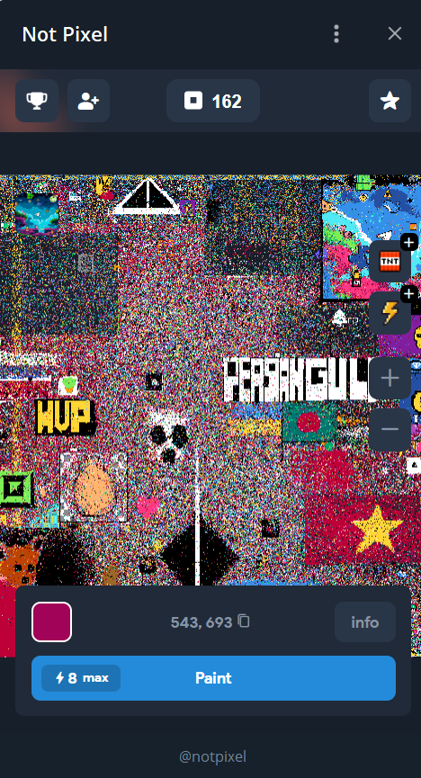Notcoin раздал лучше всех телеграмм ботов. Так вот, сейчас запустили они "игру" Not Pixel, где нам нужно просто закрашивать квадратики на большой холсте.