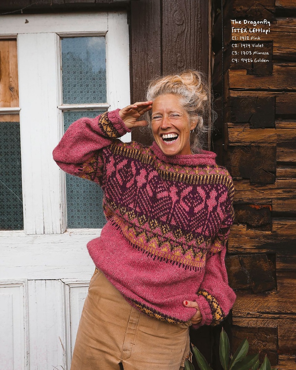 Сегодня покажу вторую часть издания о вязании и дикой природе. Но хочу сначала сказать несколько слов об авторе этой книги — Anna-Sofia Vintersol. Она с самого раннего детства ощущала особую связь с дикой природой. В то время, когда другие дети играли вместе, ей больше нравилось изучать окрестности, играя в лесу, находя в нем утешение и удовлетворение. Независимо от погоды, ей нравилось ходить по тропинкам и радостно прыгать по лужам. Она пишет, что общение никогда не было её сильной стороной, её больше привлекало рисование. В 2018 году она начала заниматься вязанием, которое быстро покорило её сердце. Anna-Sofia стала придумывать свои дизайны, которые и демонстрирует в этой книге. Итак, вторая часть. ℹ️ Ставьте нравится 👍, Комментируйте 💬, Делайте репосты 📤, Подписывайтесь на канал 🖊. Мне как автору крайне важна ваша поддержка 😀. Основой узора этого свитера является стрекоза с её блестящими прозрачными крылышками. Узор очень хорошо смотрится на ярких основных цв