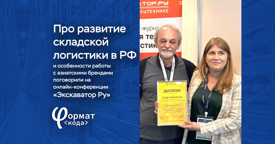 10 сентября 2024 года состоялась онлайн-конференция «Реальный склад» от «Экскаватор Ру» - деловое мероприятие о технике и трендах рынка складской логистики. О текущей ситуации в отрасли, импортозамещении складского оборудования и о своих новых проектах рассказали докладчики от отечественного и китайского машиностроения. За 5 часов эфирного времени 13 спикеров и сотни вовлеченных слушателей-профессионалов обсудили множество тем. Руководитель направления автоматизации складов и производств компании «Формат кода» Андрей Казачков выступил с докладом на тему «Роботы-новички на российском рынке складской автоматизации: вызовы, связанные с их адаптацией». В своем докладе он рассказал об изменениях, произошедших на российском рынке поставщиков роботизированных систем для логистики, рассказал о принципах работы, сильных и слабых сторонах китайских роботизированных систем, привел реальные примеры ПО, обеспечивающего интеграции с роботом и управляющей системой класса WMS/ERP, и обозначил нюансы,