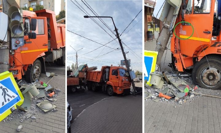 КамАЗ вылетел на тротуар и снёс светофор у Острогожского кольца в Воронеже. Водитель грузовика пытался избежать столкновения с остановившимся перед зеброй «Хендэ». Об этом в редакцию «МОЁ!» сообщил очевидец утром 30 сентября.