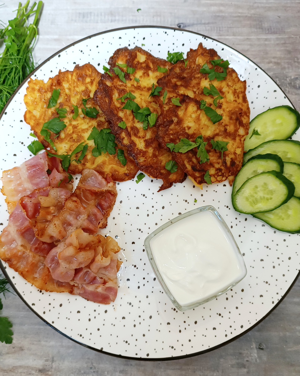 Драники - национальное белорусское блюдо из тёртого картофеля. Это настолько простое блюдо в приготовлении,минимум ингредиентов, а результат - восторг! Получаются с хрустящей корочкой и нежными внутри,они идеальны со сметаной и свежим огурцом. Также могут быть завтраком или ужином,их любят и взрослые и дети. Готовьте,пробуйте,вносите свои корректировки в рецепт по вашему вкусу. Ингредиенты : Очищенный картофель натираем на крупной тёрке,руками отжимаем сок В отжатый картофель натираем на крупной тёрке лук Добавляем яйцо,сметану,соль и тщательно перемешиваем В конце добавляем муку, перемешиваем и столовой ложкой одинакового размера, ровным слоем выкладываем драники на разогретую сковороду Жарим на среднем огне с слегка приоткрытой крышкой с двух сторон Идеальная подача - драники со сметаной,а в дополнении можно добавить красную рыбку или обжаренный бекон со свежими овощами, по желанию присыпать любимой зеленью. Приятного аппетита!
