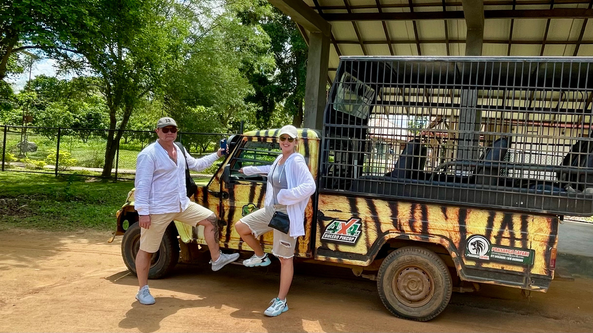 Шри Ланка 2024. Сафари парк Ridiyagama Safari Park . Мы в клетках в окружении диких животных.