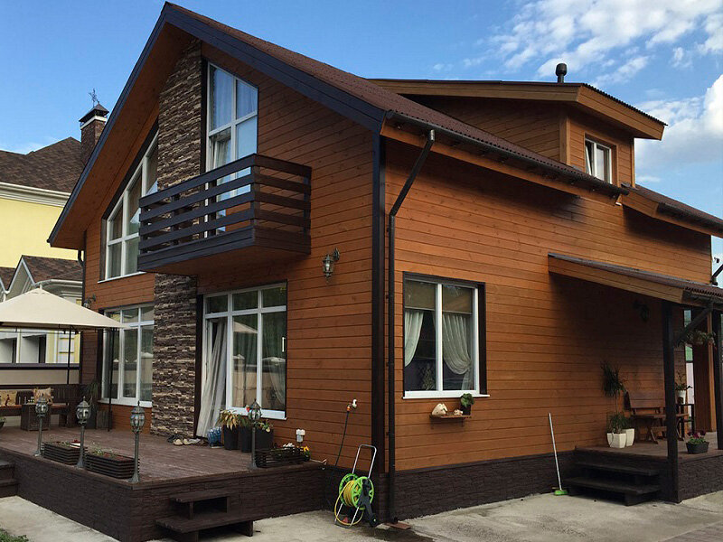 - Эстетика. Деревянная отделка создаёт тёплый и натуральный вид дома, гармонирующий с природным окружением.