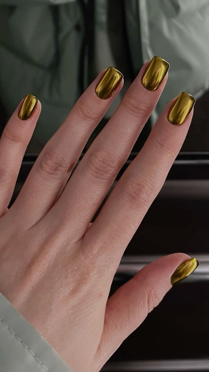 Золото — один из маникюрных трендов этой осени. Оно практически всегда выглядит дорого-богато. Можно нанести на все ногти золотой оттенок, можно сделать такой популярный всегда френч, или добавить акценты на ногтях в виде различных дизайнов, сделать всеми любимую втирку. Будет выглядеть эффектно и необычно. Maximalist nails