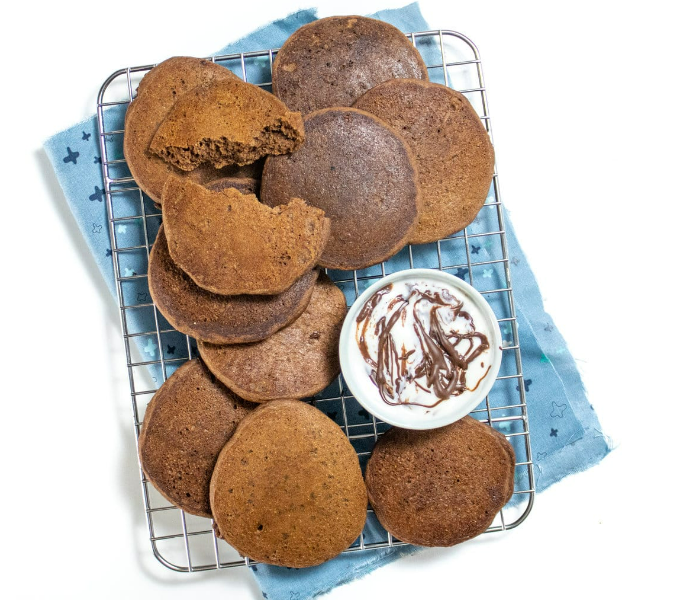 Что тут вообще обсуждать! Эти шоколадные блинчики — просто мечта: в меру сладкие, с легкой текстурой и при этом достаточно полезные, чтобы вы могли спокойно дожить до обеда. Они даже малышу с 9 месяцев придутся по вкусу, так что можно смело угощать всю семью.