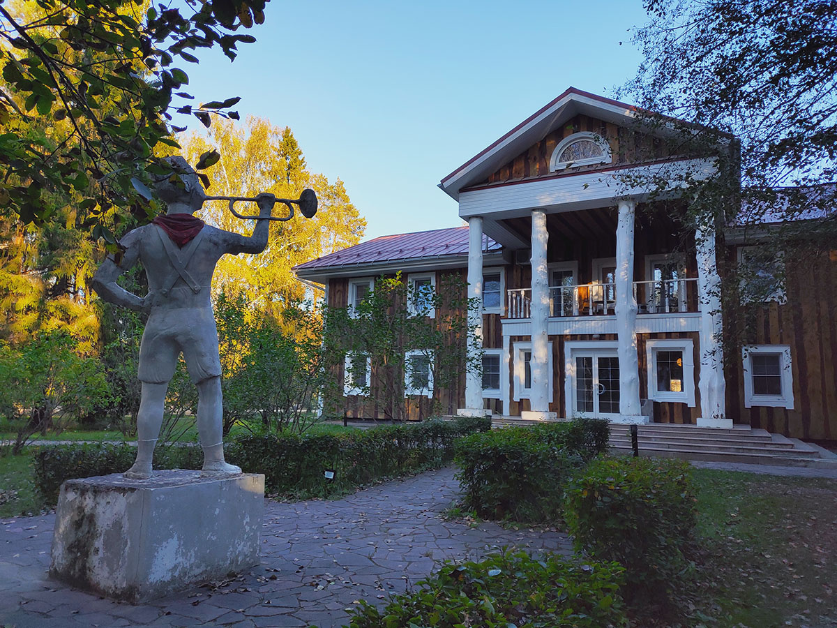 Я уже писала о том, что довольно часто наши водные походы завершаются «культурной» составляющей. И чаще всего это усадьбы, и чаще всего в плачевном состоянии. Но в этот раз после Дубны мы побывали в очень позитивном и творческом месте – арт-усадьбе Веретьево. Находится она на территории бывшего пионерлагеря, и поэтому неудивительно, что некоторые объекты напоминают о пионерии. К примеру, Дом пионеров, где можно снять относительно недорогой номер (кстати, комнаты оформлены известными людьми Леонидом Парфеновым, Ольгой Солдатовой и др.). И вообще, гуляя по усадьбе, ощущаешь некоторый отблеск тех лет) Все это произошло неслучайно, а потому что здесь было популярное место тусовок творческой интеллигенции. С тех пор здесь остались арт-объекты, посвященные советской эпохе. А есть и более современные. Например, в пойме маленького притока Дубны с гордым названием Ручей Большой, в совершеннейшем болоте сделана тропа Бродского. Александр Бродский – архитектор, художник, один из родоначальник