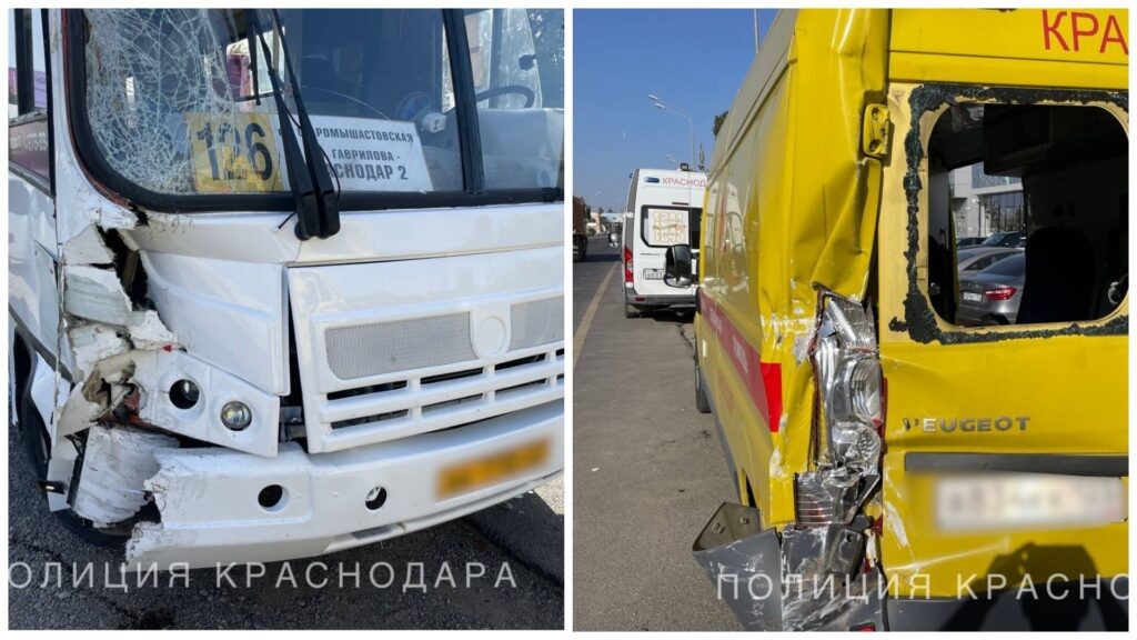 В Краснодаре водитель маршрутки отвлекся на пассажирку и врезался в машину скорой