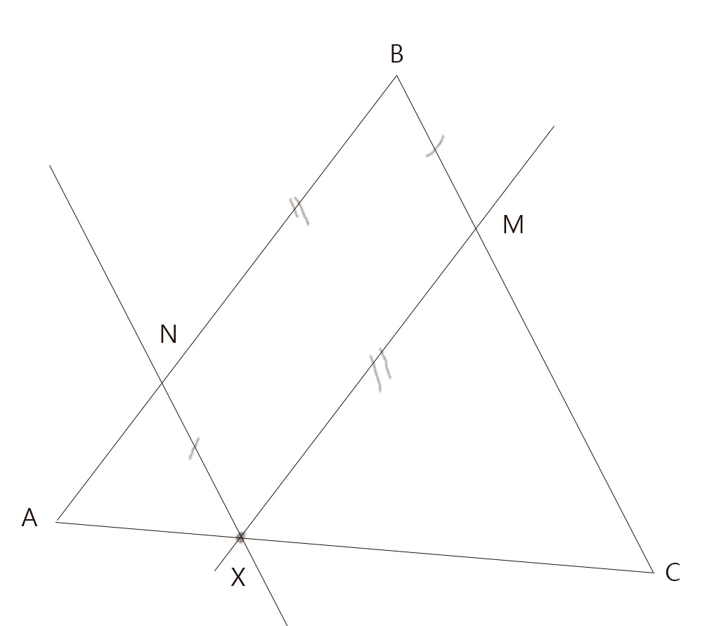 Периметр равнобедренного треугольника равен 60. Его основание составляет четверть периметра. Из произвольной точки основания проведены прямые, параллельные боковым сторонам. Чему равен периметр отсечённого параллелограмма? Ну основание вычислить просто 60:4=15. AB || XM, а BC || NX, значит XNBM параллелограмм и его стороны попарно равны. BC || NX, а значит ANX равнобедренный. AN=NX=BM AB || XM, а значит CMX равнобедренный. MX=CM=BN Периметр параллелограмма NX (=AN)+NB + BM + MX(=CM) = AB + BC А AB + BC ни что иное, как периметр треугольника минус основание, т.е. 60-15=45 Ответ: 45 Другие задачи раздела