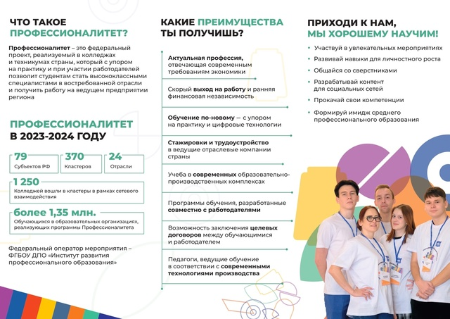 «Амбассадоры Профессионалитета» встретятся со школьниками 8–11-х классов и расскажут ученикам о развитии системы СПО, продемонстрируют преимущества образовательных программ проекта «Профессионалитет» на примере своего учебного заведения.