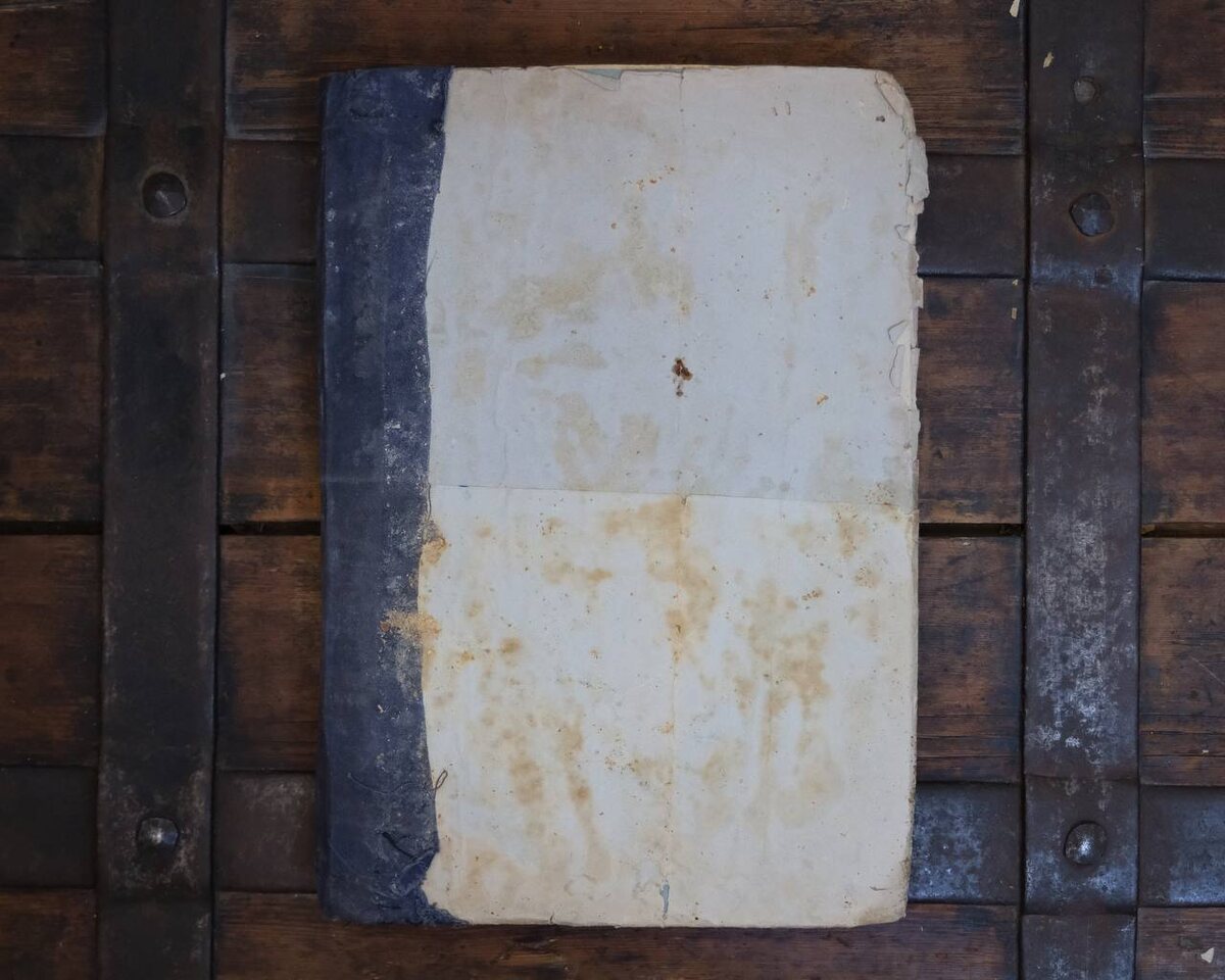 Многие знают, что Коран, даже если книга сильно повредилась от износа, ни в коем случае нельзя выбрасывать или вредить ей какими-то другими способами. Эта книга – самое священное назидание для мусульман, слово «коран» с арабского так и переводится: назидание, чтение вслух. Коран, пришедший к нам на реставрацию, имел очень серьёзные повреждения. Состояние блока оказалось крайне плачевным: страницы с обширными затёками буквально рассыпались в руках и от них оставались клочки. Переплёт (мусхаф) также выглядел удручающе. На сторонках скромного белого цвета появились лисьи пятна, да и вся поверхность истёрлась и пообтрепалась. Решено было изготовить новый составной переплёт с использованием мраморной бумаги цвета морской волны. Мастеру удалось выполнить благородные переливы с золотистыми вкраплениями, будто солнце играет на поверхности моря. Корешок выполнили с бинтами, чтобы блок сохранился как можно дольше, и украсили золотистым тиснением. С книжным блоком работа оказалась кропотливой. С