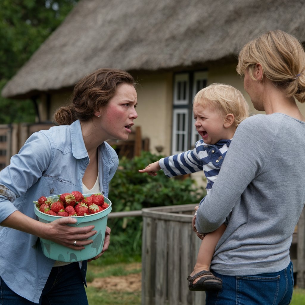 - Да может было бы и не жалко, если бы ты разрешение спросила! Твой сын без спроса запустил свои руки в моё ведро с клубникой! По твоему это нормально? Чему ты ребёнка учишь? Что чужое можно без спроса брать?