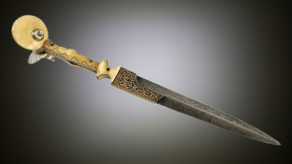 Экзотический на вид кинжал с ушами (ушастый кинжал), по-видимому, был завезен в Европу через Испанию и, скорее всего, имеет мавританское происхождение. Один из самых ранних известных образцов, хранящийся сейчас в оружейной палате в Мадриде, принадлежал Баобдилу, последнему мавританскому королю Гранады, чье правление закончилось в 1492 году.