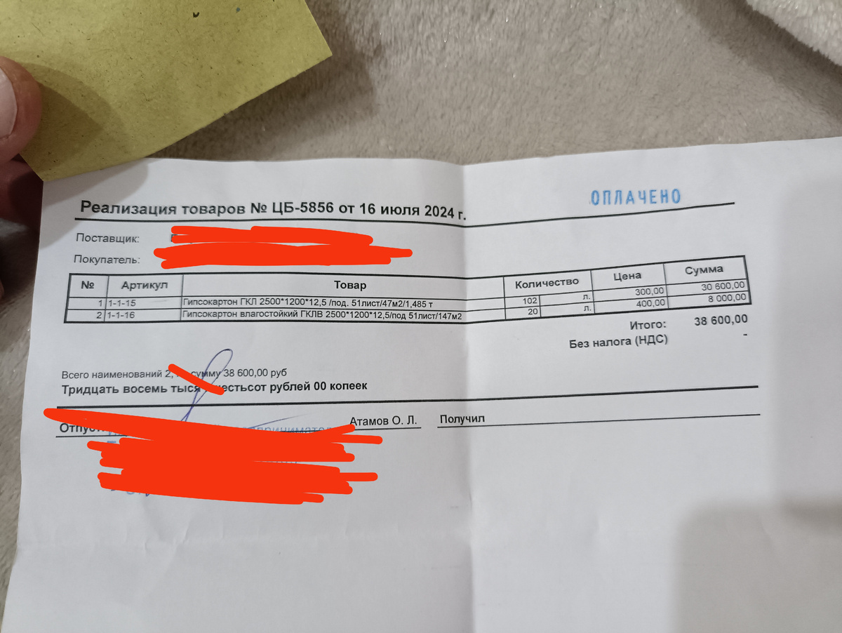 К сожалению время не стоит на месте и цены тоже. Приходится следить за стабильностью цен, а именно за их повышением. И это означает, что кое-чем необходимо лучше запастись заранее и пусть лежит. Так выходит дешевле. Не зря же мы в первую очередь делали черновой пол. Теперь можно спокойно распределить нагрузку от листов ГК по нескольким точкам, а это, в общей сложности, около 3300 кг. Ну и цены. Я выкладывал статью с январскими ценами. То есть полгода назад этот объем можно было купить, как минимум, на 1500 р дешевле. Чтобы не ломать спину, мы наняли грузчиков. За доставку и выгрузку мы щапла 10000 р. Я так же пролетел с ОСП. В мае 23-го года мне предлагали по 390 р за лист, а спустя три месяца я уже покупал по 520 р за лист. А всё потому, что негде было хранить. Вернее было, но надо было разобрать кучу барахла. Моя лень мне обошлась в 13 тр🤦♂️, а это 100 м ГОСТовского кабеля 2×2.5 мм.🤷♂️