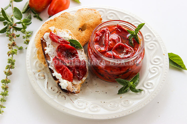Вяленые (сушеные) томаты — отличная альтернатива традиционным закаткам. Рецепт родом из Италии, Испании и других жарких средиземноморских стран. Местный климат позволяет сушить томаты на солнце. В наших широтах вяленые половинки помидоров, консервированные в масле, можно купить в супермаркете. Правда, цены на них «кусаются». Но есть выход — можно высушить вяленые помидоры в домашних условиях, в духовке, и залить их маслом. Вам понадобятся спелые «мясистые» помидоры (оптимально сорт «Сливка»), ароматные итальянские травы, масло и, конечно же, хороший рецепт, в котором мы подробно расскажем, как вялить томаты в духовке, сколько времени и как правильно хранить заготовку, чтобы она простояла в холодильнике длительное время. Помидоры помыть, обсушить. Лучше всего подходит сорт «Сливка», в нем много мякоти. Здесь ровно 1 кг. Плоды разрезать и убрать семена. Советую разрезать на половинки, а не на четверти, потому что так сушить удобнее. Самые маленькие помидоры (размером с виноградину) я ост