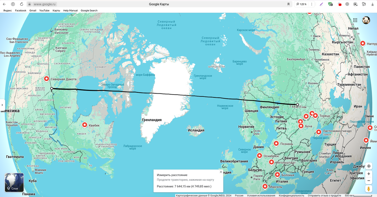 1. Межконтинентальные стратегические ракеты шахтного базирования располагаются в Северной Дакоте и Южной Дакоте Соединённых Штатов Америки. Прямоугольник штата Северная Дакота северной своей стороной граничит с Канадой, так что это фактически наиболее близкое к центру Северной Америки место США, наиболее недоступное и защищённое место у США на континенте. Это разумно. Так же и у России её стратегические ракеты базируются в глубине страны: на Урале, в Западной Сибири и Восточной Сибири. 2. Не следует думать, что баллистическая ракета полетит привычным авиарейсом через Атлантический океан, Западную Европу, Восточную Европу и, наконец, посетит Москву. Всё совсем не так, ибо Земля — геоид, что, впрочем, плеоназм. Ракеты полетят через Канаду на север, ближе к Северному полюсу. Наиболее короткий маршрут из крайнего северо-восточного угла Северной Дакоты к крыше Мавзолея В. И. Ленина, ненавистному всему свободному миру символу коммунистической сверхдержавности, идёт через (1) Канаду, (2), Гр