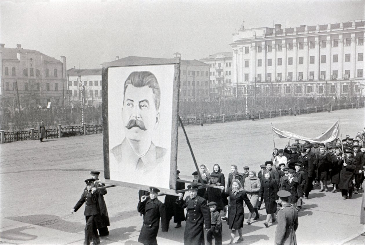 Редкое фото — потртреты Сталина на первомайской демонстрации в Улан-Удэ.