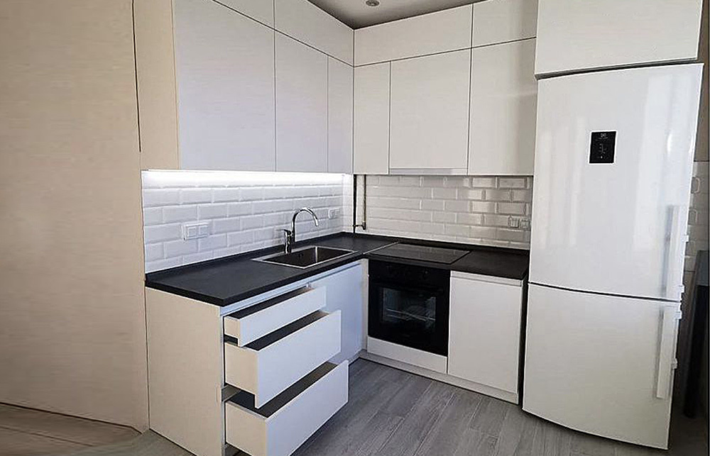 Если вы делаете ремонт в недавно приобретенной на вторичном рынке квартире, и только планируете купить холодильник с новой мойкой и плитой, стоит выбрать модели поменьше. Для кухонных дел вполне достаточно встроенной 2-х комфорочной плиты.