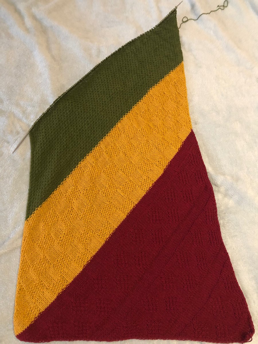 Про свой самый яркий и приятный осенний проект уже рассказывала здесь и здесь: Вот так выглядел экватор проекта: Четвертую секцию вязала оранжевой пряжей, похожей на тыкву узор Тыква не обнаружен был на просторах интернета. Воспользовалась максимально похожим узором-Луковки Получился больше похожим на соты, но в общую концепцию все равно вписывается: Пятый, сочно-зеленый моточек напомнил остаток зеленой листвы осенью и яблоки Узор подобрала Гусенички Для финального уголка в ход пошла темно-коричневая пряжа. Цвет шоколад, узор финики. Вот и получились финики в шоколаде Месяц неспешного рукоделия-и палантин готов! Получился 60х200 см-не поместился на кровати для фотосессии в полный рост. Уже пережил поход в кинотеатр( очень уютно было закутаться во время просмотра долгожданной премьеры Руки Вверх) и прогулялся в парке