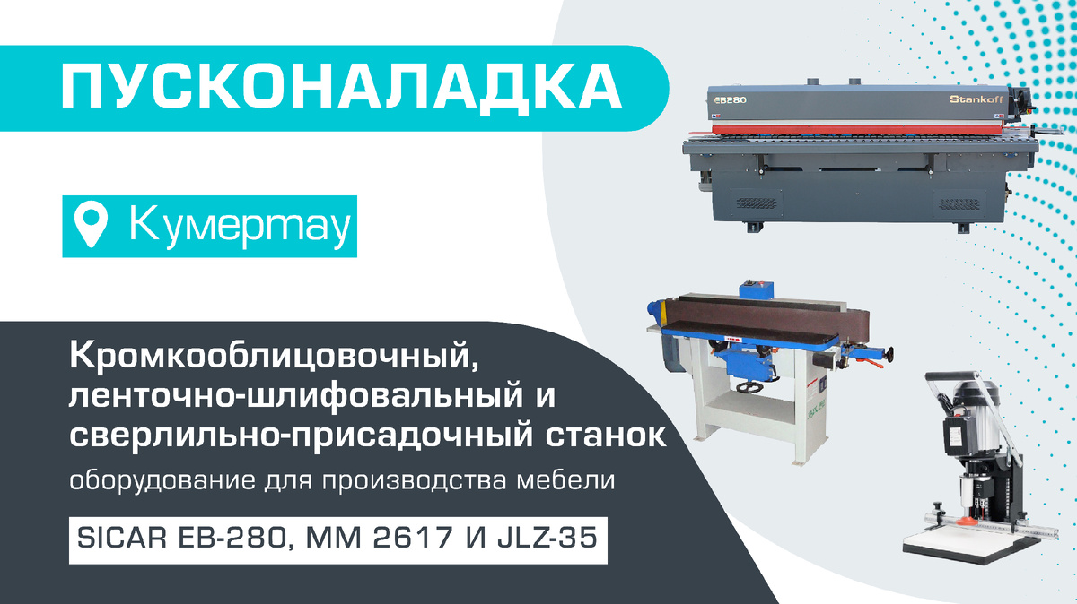 В июне 2024 года нашей компанией была осуществлена комплексная поставка и пусконаладка станков для производства мебели в Кумертау. Кумертау, название которого в переводе с башкирского означает «угольная гора», хранит в себе дух промышленного прошлого и настоящего. Этот город на юге Башкортостана был построен вокруг угольных месторождений, и его история тесно связана с природными ресурсами региона. Здесь, среди зелёных холмов и рек, находится предприятие нашего клиента, которое вносит весомый вклад в развитие городской инфраструктуры, возводя жилые и нежилые здания, преображая облик Кумертау и его будущее. Пусконаладочные работы были выполнены за один день. Было поставлено и введено в эксплуатацию следующее оборудование: автоматический кромкооблицовочный станок Sicar EB-280, шлифовальный ленточный станок MM 2617, сверлильно-присадочный станок под петли JLZ-35 (MZ-7302) и аспирационная система MF9030.