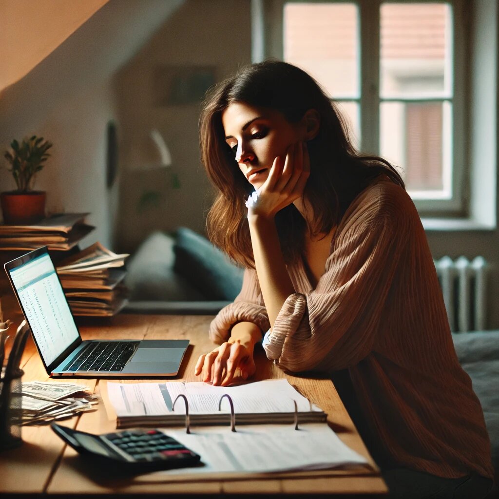 Катя сидела за рабочим столом в маленькой, но уютной квартире. Перед ней лежали счета, разложенные в строгом порядке. Очередной отчёт на экране ноутбука требовал внимания, но мысли то и дело ускользали в сторону. Она взглянула на часы. Было уже поздно, а работа казалась бесконечной.