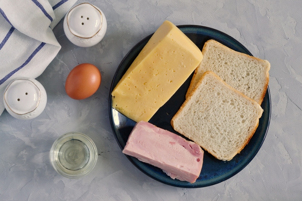 Ингредиенты: Сыр натереть на крупной тёрке, отрезать 1-2 ломтика ветчины, зависит от размера. Если берёте отварную куриную грудку, то ее тоже нужно нарезать нетолстыми ломтиками. Сковороду поставить на небольшой огонь, немного прогреть, смазав растительным маслом для жарки. Разбить яйцо, выложить его на сковороду. Сразу же лопаточкой нужно аккуратно распределить яйцо по сковороде, так, чтобы желток тоже растёкся. Размер яичной лепешки довести по площади до размера двух ломтиков хлеба, с которым вы будете делать сэндвич. Немного посолить и поперчить. Сверху яйцо посыпать 1/3 натертого сыра. Сверху положить два ломтика хлеба рядом друг с другом на расстоянии 0,5 см. Прогреть не более минуты, можно под крышкой, чтобы сыр расплавился и склеил яйцо и хлеб. Затем с помощью лопаточки нужно перевернуть ломтики хлеба с яйцом. Ломтики хлеба должны быть на сковороде, а яйцо сверху. Посыпать яйцо оставшимся сыром. Сверху на сыр на один ломтик положить ветчину. Я часто предварительно ветчину слегка