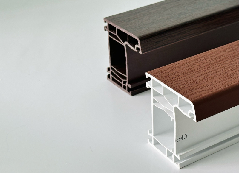 При этом способе декорирования цветной акрил, он же акрилонитрилстиролакрилат или просто АСА, наносится на ПВХ профиль в процессе его производства. ПВХ смесь подается на один экструдер, цветной акрил – на другой, в фильере они соединяются вместе. Далее при помощи специального валика и технологии глубокого тиснения создается выразительная текстура профиля. Этот метод декорирования ПВХ профиля используется в 3-камерной системе ORTEX Classic Design и 5-камерной - ORTEX Optima Design.