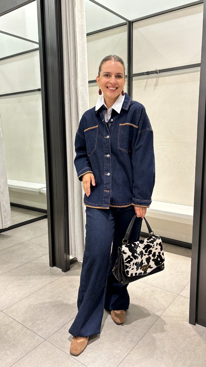 Куртка-рубашка дополнена вышивкой, которая также подчёркивает этнические мотивы и за свою стоимость (около 3 тысяч рублей просто прекрасна). Джинсы на фигуру "груша" сели спорно: хорошо в бёдрах, но слишком свободно в талии.