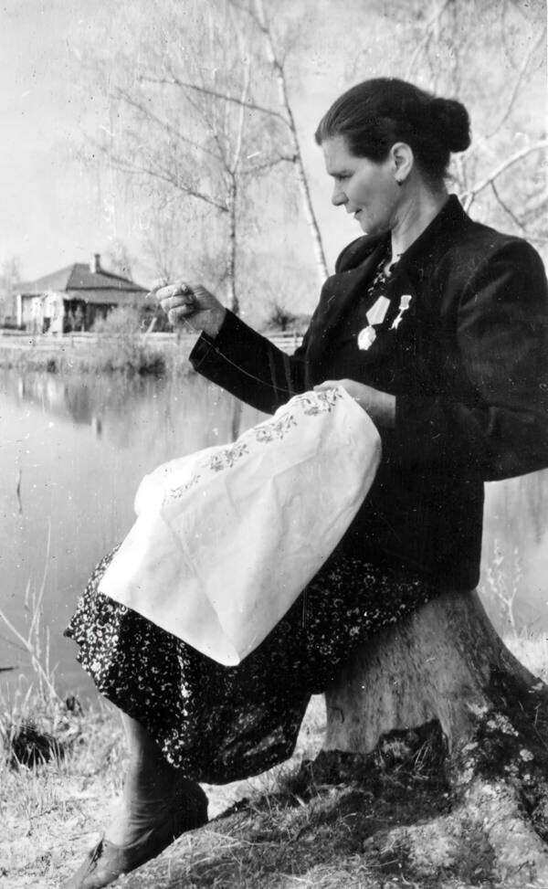 До сих пор многие задают себе вопрос, как такое было возможно, откуда шли эти грандиозные успехи, чьими руками создавалось чудо? Пожалуй, тут можно просто сказать – то было время Героев. Тысячи отмеченных этим высоким званием, и миллионы скромных, тихих Героев, своими руками создававших наше будущее. Есть в нашем музее картина Ю. А. Шутова «баба Маня». На фоне русской печи, домотканых занавесок сидит скромная старушка, скрестив руки. Художник акцентировал внимание на ладонях. Узловатые, потемневшие, рабочие – такими руками создавалась страна, все ее победы, вся ее трудовая слава.