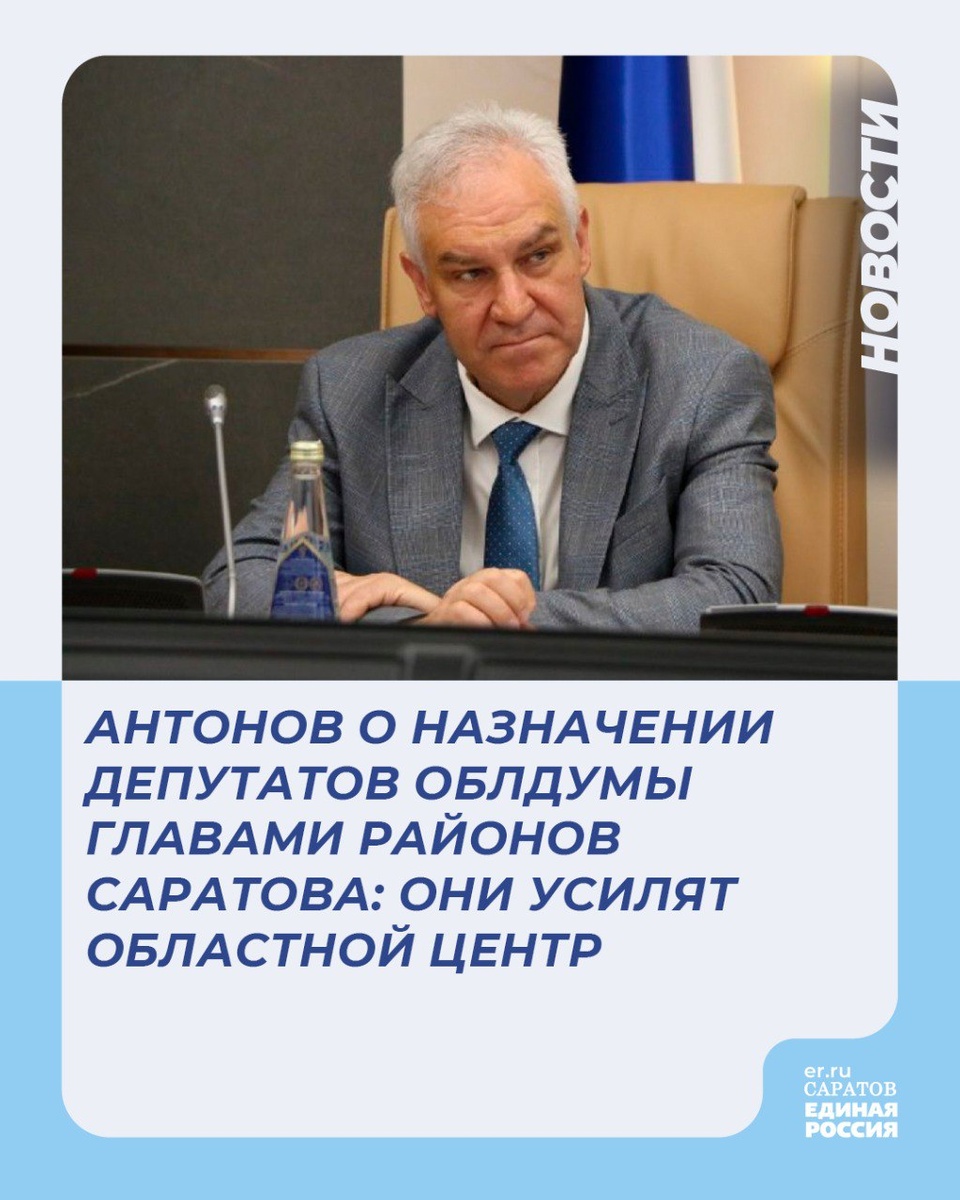 🤝🏼Антонов о назначении депутатов облдумы главами районов Саратова: Они усилят областной центр