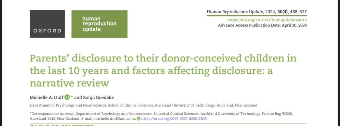 Этот обзор также отмечает, что родителям, столкнувшимся с необходимостью использования донорского биоматериала, необходим постоянный доступ к психологической поддержке, в том числе в связи с необходимостью принятия решения относительно раскрытия информации о донорстве ребенку.