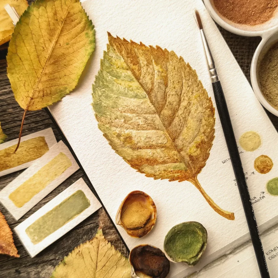 Краска из бессмертника легко наносится, создавая мягкие, полупрозрачные слои, что позволяет использовать её в различных техниках, включая акварель.