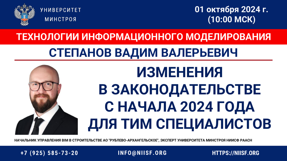 Степанов Вадим Валерьевич - Начальник управления BIM в строительстве АО "Рублево-Архангельское", Эксперт Университета Минстроя НИИСФ РААСН