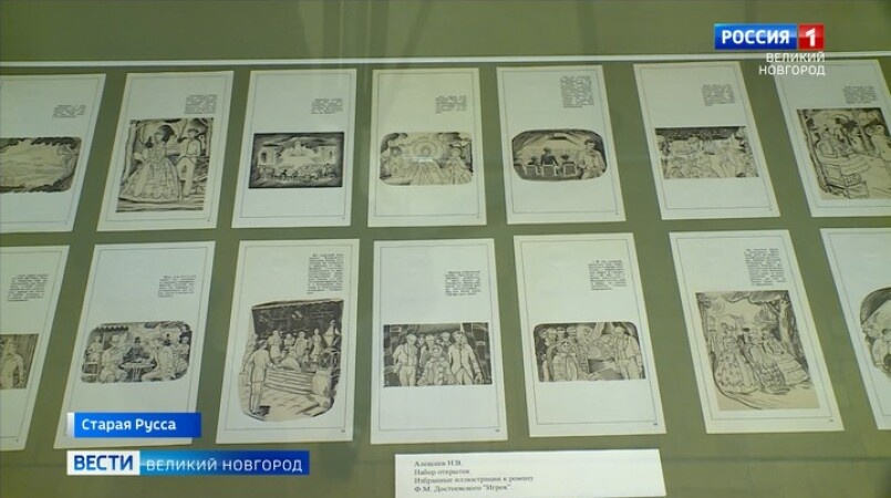 Самому автобиографическому произведению Фёдора Михайловича Достоевского «Игрок», как считают исследователи творчества писателя, в Старорусском Музее романа «Братья Карамазовы» посвятили выставку. В экспозиции представлены эстампы Татьяны Прибыловской, открытки Николая Алексеева и издания романа на испанском, немецком, французском, эстонском, азербайджанском языках. По некоторым данным, «Игрок» — один из самых известных романов в мире. К примеру, в Германии, как рассказал куратор выставки Сергей Шараков, даже есть культура почитания этого произведения. Немцы помнят о том, что русский писатель играл в рулетку на их родине. Многое о страстях героев романа расскажут картины по его мотивам. «Есть замечательный новгородский художник Виктор Шумский. Это его картины, посвященные роману «Игрок». Они в стиле сюрреализма написаны. Очень интересные. На открытии был сам художник. Он читал эти картины», — сказал Сергей Шараков. Картины выстроены в определенной последовательности восприятия роман