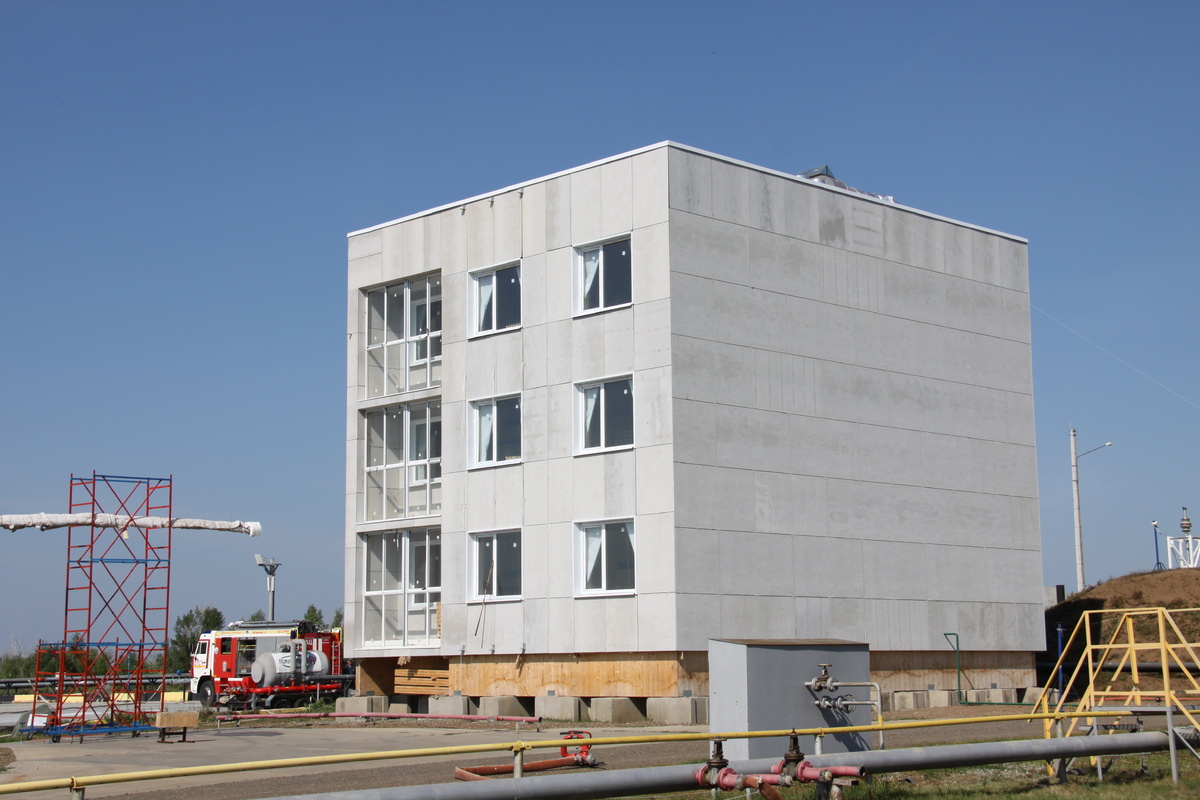 Начнём с информации, опубликованной по этому поводу Минстроем 04.09.2024, к которй мы добавим больше фотографий. В Оренбургской области на учебно-тренировочном испытательном полигоне филиала ФГБУ ВНИИПО МЧС России завершен цикл уникальных исследований с крупномасштабными огневыми испытаниями деревянных зданий. Мероприятия по развитию и расширению технологий деревянного домостроения на территории страны проводятся в соответствии с поручением Президента России. На завершающем этапе выполнялся эксперимент по развитию пожара в специально построенном многоквартирном жилом доме из конструкций на основе перекрестно-клееной древесины CLT. Здание было выполнено с использованием частичной конструктивной огнезащиты гипсокартоном внутренних стен и навесного фасада из негорючих материалов, а также оборудовано противопожарными дверями и системой дымоудаления. На втором этаже над очагом пожара была установлена спринклерная система пожаротушения. Применение этих мероприятий по обеспечению пожарной без