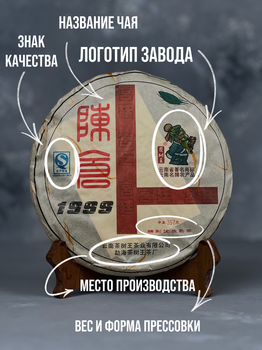 Каждый раз, держа блин пуэра в руках, мы смотрим на обложку и даже не задумываемся, что скрыто за этими символами и иероглифами. Некоторые из них говорят второстепенную информацию о чае, но некоторые о его качестве. Для начала разберемся, какая информация находится на пуэрном блине, а после узнаем о чём именно она говорит. Несколько обозначений, которые вы можете встретить в названии своих блинов: Основное различие пуэров заключается в типах чайных листьев и культивара. Поэтому на блине часто можно встретить иероглифы, указывающие на вид листа и дерева: • Цяо Му — «Прямоствольные деревья», что в принципе является синонимом Да Шу. • Гун Тин — «Дворцовый», сорт листа — самый мелкий и отборный. • Да Гу Шу — «Большие древние деревья», подразумеваются прямоствольные деревья, в отличие от кустов Тай Ди. • Е Шэн — «Дикорастущие», то есть деревья, растущие в лесу среди других деревьев, а не на плантациях. Разберем расшифровку места производства на примере блина Шу Пуэр Синхай «Павлин», 2004 г