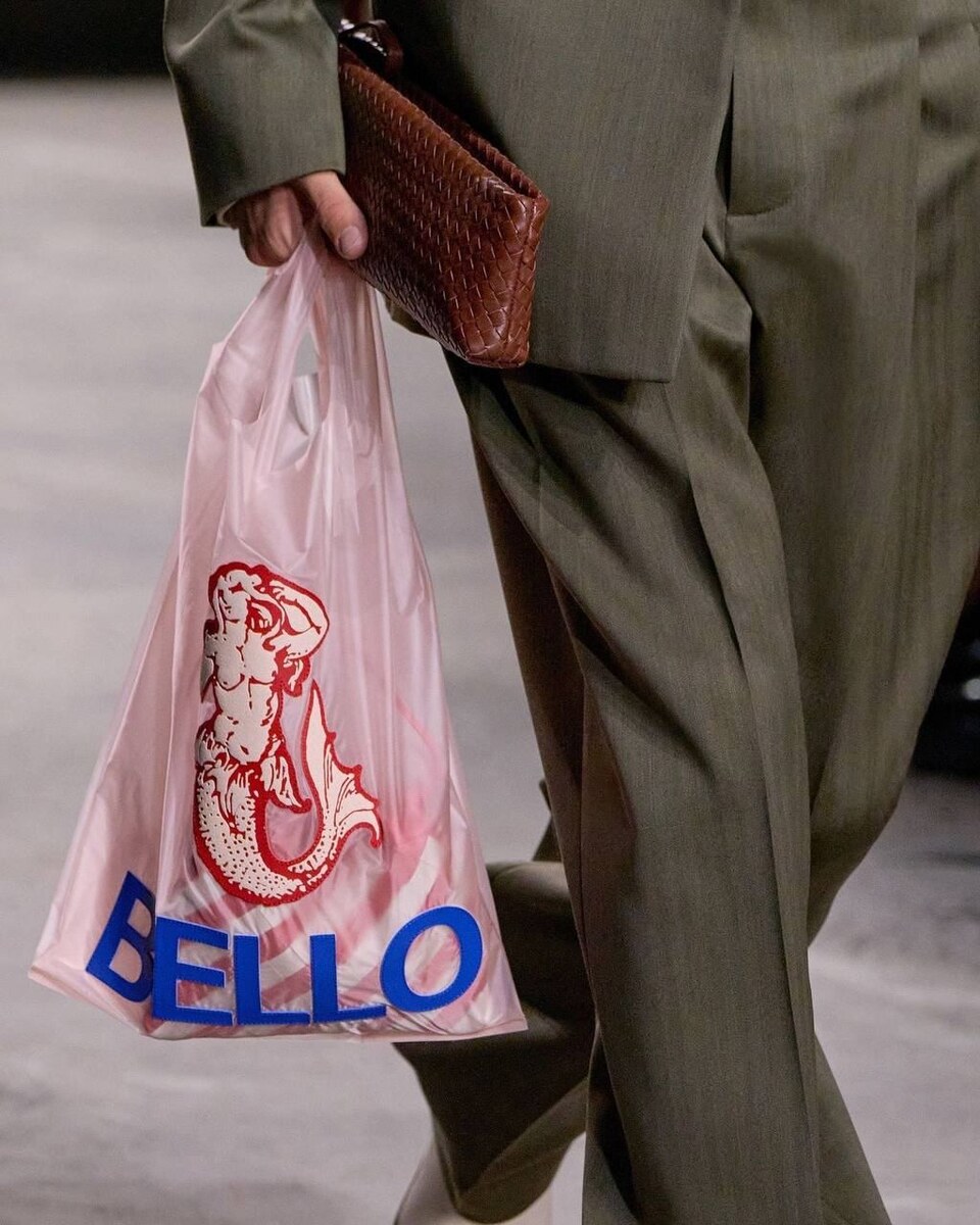 Не скажу, что это было ноу-хау, но цепляло взгляд. На сентябрьских Неделях моды в Нью-Йорке, Милане и Париже, да и у нас в России, многие бренды продемонстрировали использование подручных материалов в своих коллекциях. "Старо, как мир", - скажете вы, и будете правы. Но подиум все-таки удивил. И, кажется, весной мы увидим хотя бы один из зародившихся прямо сейчас трендов. Тема вторичного использования предметов в моде сейчас самая актуальная. Даже на престижном конкурсе молодых дизайнеров LVMH Prize победителем стала Эллен Ходакова-Ларссон, которая занимается только переработкой старой одежды и предметов. 1. Bottega Veneta неожиданно продемонстрировал предполагаемый тренд. Показ привлёк внимание тем, что у каждой модели в руках находились пластиковые кулечки, мешки, пакеты в дополнение к кожаной сумочке. Как будто они только что вышли из продуктового магазина с покупками. Помнится, в 90-е годы, когда только-только появились полиэтиленовые пакеты с яркими картинками, мы носили их вмест