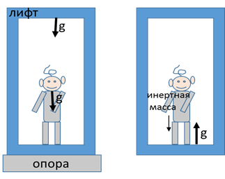У нас полно примеров, когда одного и того же результата можно добиться с помощью совершенно разных процессов. Например, нужно нагреть чайник до 25 градусов Цельсия. Можно оставить его на солнце, а можно электрический включить в розетку. Результат будет один и тот же, а процессы разные. В первом случае, сначала нагреются стенки, потом вода. Во втором случае, сначала нагреется спираль, потом вода, потом стенки. А можно впихнуть его в микроволновку – сразу нагреется вода. Ну, и затраты получатся несколько разные. Так и с лифтами Эйнштейна. Ну, результат почти одинаковый, однако процессы совсем разные. И делать вывод о том, что они все одинаковые, только опираясь на результат – некорректно. В процессе стояния лифта на Земле, на самом деле, три участника. Это кабина лифта, клоун в лифте, и опора. В лифте движущимся, с ускорением вдали от гравитирующих тел, всего два участника. Роль опоры выполняет сам лифт. Поэтому в первом случае, мы можем убрать лифт, и клоун будет стоять на опоре так же