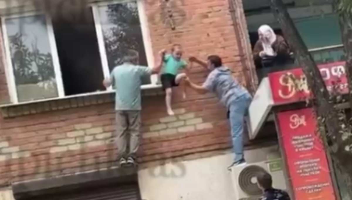 Жители краевой столицы заметили маленького ребёнка, который звал на помощь во время пожара в комнате общежития; неравнодушные горожане вытащили ребёнка из окна до приезда пожарных; официальных комментариев от спасателей не поступало. Об этом 1 октября сообщил telegram-канал «Краснодар | Телетайп». СМОТРЕТЬ ВИДЕО В краевой столице произошёл пожар днём 1 октября. Чёрный дым, по словам очевидцев, внезапно повалил из комнаты в общежитии, расположенном на улице Карякина. В момент пожара в помещении находился маленький мальчик, который открыл окно, залез на подоконник и начал звать на помощь. Один из мужчин решил самостоятельно провести спасательную операцию, не дожидаясь приезда пожарной службы. Он забрался на наружный блок кондиционера, а затем перешагнул на оконный козырёк. В этот момент соседка мальчика бросила вниз одеяло. Очевидцы происшествия натянули полотно на случай, если ребёнок оступится. Однако этого, к счастью, не произошло. Во время подоспел второй спаситель, который залез на