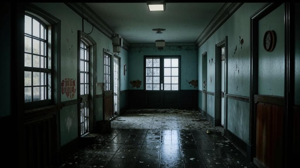 На окраине небольшого городка стояло здание, некогда служившее психиатрической клиникой. Его стены обветшали, а окна были заколочены досками. Местные жители не решались даже приближаться к этому месту. По легенде, в этой больнице когда-то проводили странные эксперименты над пациентами, а потом внезапно её закрыли. Никто точно не знал, что произошло, но здание оставили в запустении, и оно быстро приобрело дурную славу.
