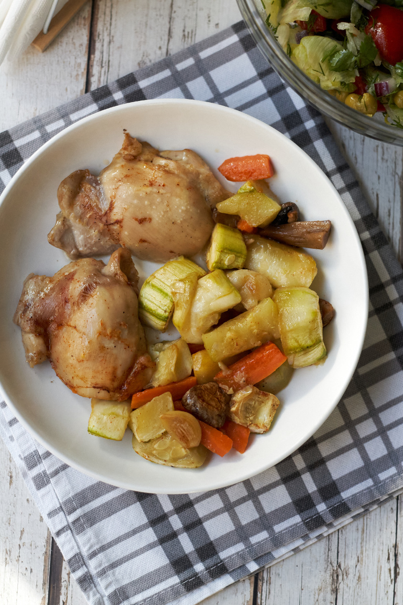 Сегодня мой завтрак состоял из яичницы-скрэмбла, отварной полбы (с понедельника оставалась), вареной свеклы с тыквенными семечками и льняным маслом. Здесь содержатся и белки, и сложные углеводы, и жиры, и клетчатка. Такой завтрак обеспечит длительное насыщение и энергию. Можно экспериментировать с крупами, добавлять зелень, менять семечки для большего разнообразия вкусов. Скрэмбл готовлю на сливочном масле. В холодную сковороду кладу небольшой кусочек масла и разбиваю яйца. Ставлю средний огонь и помешивая яйца, довожу их до кремовой консистенции. Солю, перчу уже в тарелке. Сегодня еще посыпала тертым сыром. В связи с моим отпуском в ближайшие 2 недели не будет выходить рубрика "Меню дня". Но я подготовила для вас статьи с рецептами выпечки, идеями для завтрака и др.. На обед запекла куриное филе бедра с овощами (кабачок, картофель, морковь, чеснок и шампиньоны). Курицу и овощи посыпала солью, молотым черным перцем, красной сладкой и копченой паприкой. Запекала в духовке при 190 С ~