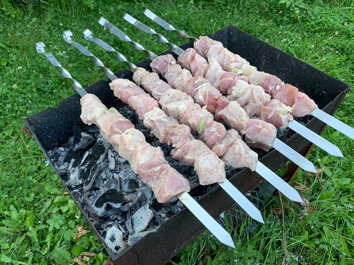 Свинина(шея) - 2 кг Лук репчатый - 4шт. Минеральная вода газированная - 1л Специи для мясо - 1ч. ложки Перец черный молотый - 0,5ч. ложки Паприка молотая - 0,5ч. ложки Соль - 3 ч. ложки Лимон- половинка Приготовление: Нарезаем мясо, на кусочки. Кусочки мяса не должны быть маленькими, чтобы они не пересохли внутри. При этом крупные кусочки будут дольше готовиться. Перекладываем нарезанное мясо в глубокую миску, где мы будем его мариновать. Шинкуем лук, лимон нарезаем полукольцами и добавляем к мясу. Лук с лимоном мнем, что бы он отдал свой сок. Добавляем специи на свой вкус. У меня это специи для мяса. Заливаем минеральной водой и перемешиваем. Оставляем мариноваться не менее 4 часов. Я например предпочитаю класть маринованный шашлык в вакуумный пакет, так более удобно брать его с собой. Большое спасибо, что дочитали до конца! Если вам было интересно, ставьте лайк и подписывайтесь, чтобы всегда быть в курсе новых публикаций!
