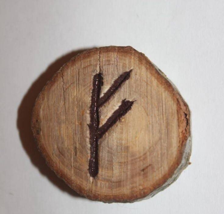 3. Вырежьте ножом или нарисуйте маркером руну Феху, в процессе произнесите: