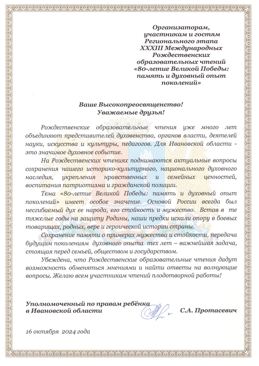 16.10. Приветствие уполномоченного по правам ребенка в Ивановской области С.А. Протасевич участникам Регионального этапа Рожд. чтений