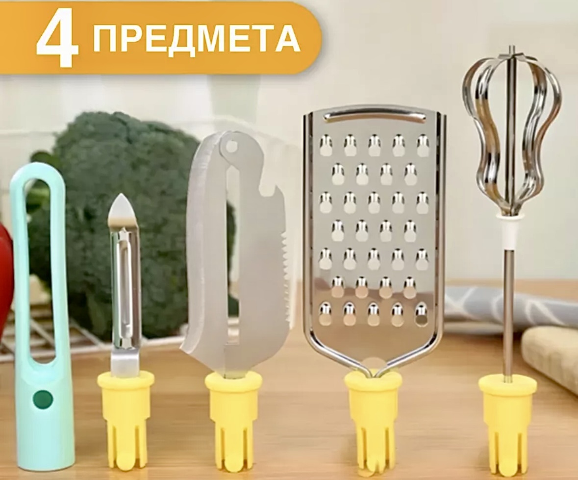 Среди множества предметов обихода меня на днях привлекло несколько новинок для кухни. Недорогие, стильные, многофункциональные помощники, которые позволят сэкономить силы и время. Что уж говорить, на кухне мы бываем часто, значит, надо сделать свое пребывание там максимально комфортным. Привет, меня зовут Ксения и я шопоголик человек, который ценит свое время и деньги. Поэтому мои покупки чаще всего совершаются на просторах маркетплейсов. Удобно: можно почитать отзывы, сравнить цены и выбрать необходимое. Мои обзоры не носят рекламного характера, все цены и наличие актуальны на момент выхода публикации. Классный набор со всем необходимым для съемной или новой квартиры, где пока ничего из утвари нет. А еще для тех, у кого мало места на кухне. В комплекте венчик, нож и терка для овощей, овощечистка, выполненные из нержавеющей стали. В принципе, для приготовления пищи этого достаточно. Цена более, чем доступная: 807 рублей. Если все предметы покупать по отдельности, выйдет дороже. А