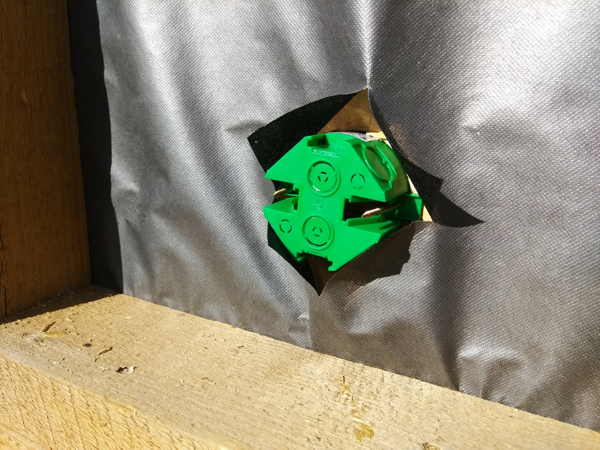 Прокладка электрики с выводом в подрозетники и их гидроизоляция. Работать было удобно, подход с двух сторон! Заматывал подрозетники и прокладывал кабель в гофре.