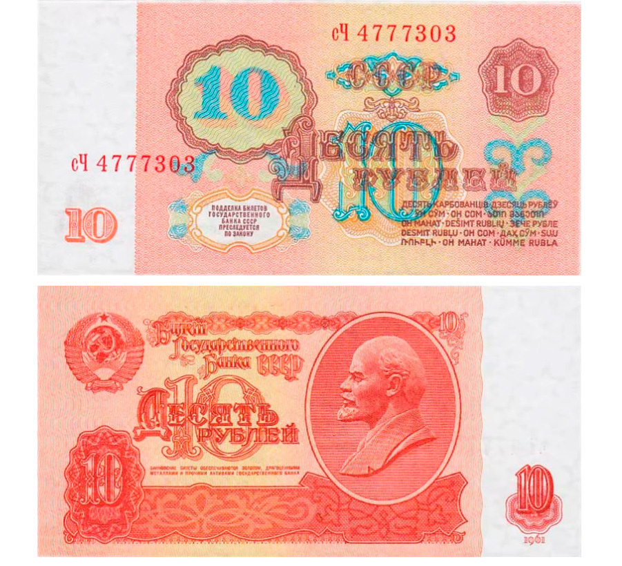 В последний раз в СССР облик бумажных денег поменялся в 1961 году. В обращение были выпущены в том числе и новые 10-рублевые купюры с портретом Ленина. Так совпало, что они оказались красного («червонного») цвета. Этими банкнотами советские граждане рассчитывались вплоть до распада СССР (до 1991 года). И в обиходе красную бумажную 10-рублевку тогда часто называли «червонцем», хотя официально этот термин уже не использовался.