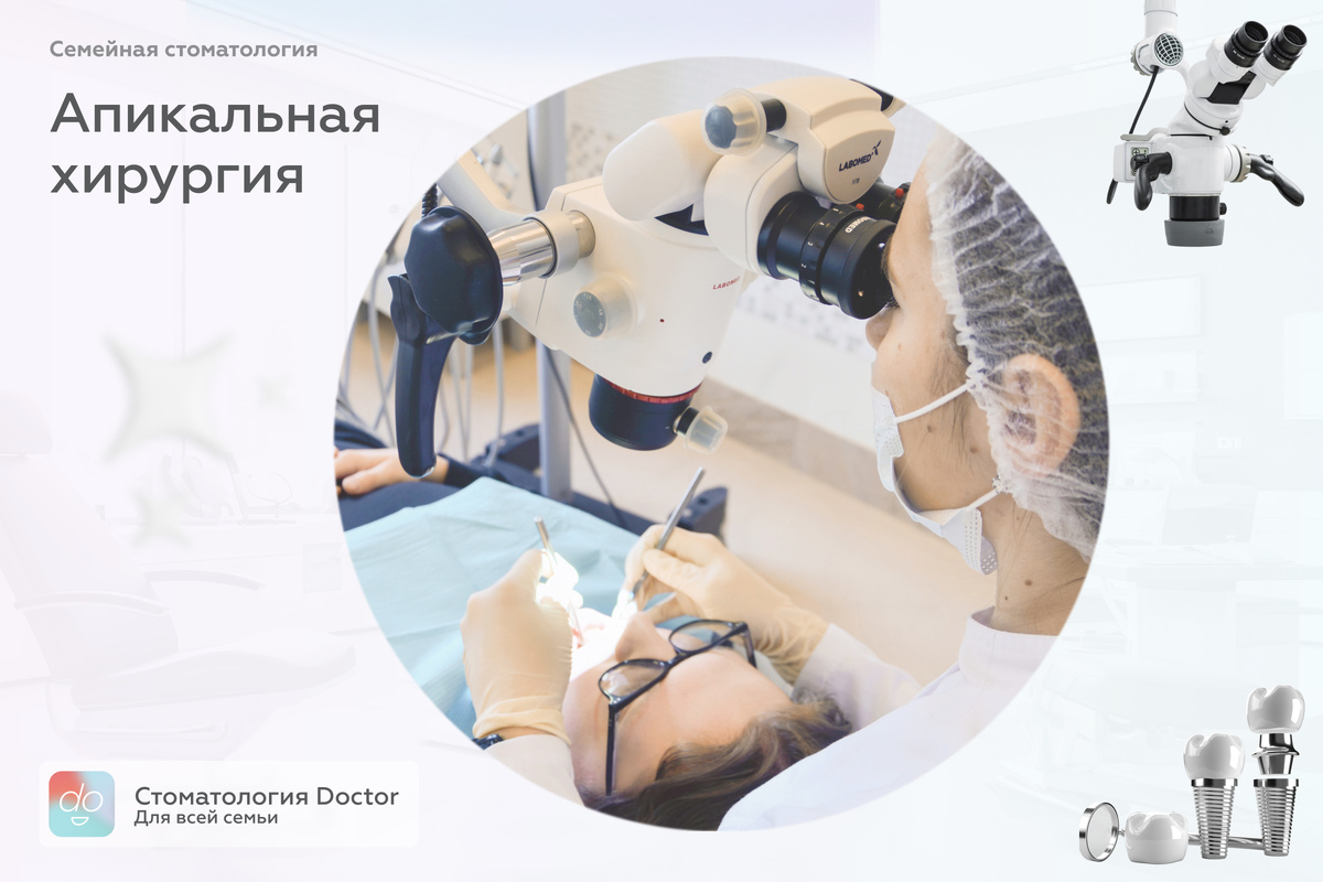 На сегодняшний день в арсенале современной стоматологии достаточно методов, позволяющих избежать удаления и сохранить зуб. Один из таковых - апикальная хирургия. Что это такое и как она помогает пациентам - обо всем этом, как всегда просто о сложном, рассказывает хирург-имплантолог клиники Doctor - Татьяна Штернлихт. Апикальная хирургия – это методика сохранения зубов, при которой осуществляется резекция (удаление) верхушки корня зуба с последующим пломбированием канала. Это достаточно известная методика, получившая вторую жизнь благодаря разработке современных материалов и установок. Апикальная хирургия проводится под местной анестезией в несколько этапов: Очень важно качественно визуализировать место проведения операции. Отсюда понятно, что апикальная хирургия позволяет ⠀ Но что самое важное - именно благодаря апикальной хирургии мы дарим зубу еще один шанс на сохранение, тогда как другие методы оказываются безрезультатными. Также именно благодаря апикальной хирургии доктор может раб