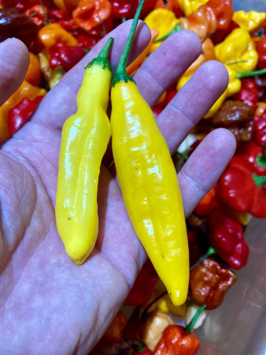Lemon yellow (гибридный) — это яркий и ароматный сорт перца чили, гибрид lemon drop ( aji lemon )- самого популярного представителя вида capsicum baccatum. Внешний вид: внешне выглядит, как lemon drop, только плоды у него раза в 3-4 больше Вкус: я очень люблю lemon drop и этот гибрид мне тоже пришелся по вкусу. Он такой же ароматный, но менее острый. Отчетливо чувствуется цитрус. Уровень остроты: гибридные перцы очень тяжело притянуть к стандартизации, но данный сорт я бы оценил где-то на равне 30 000 сковиллей. Условия выращивания: очень плодовитое растение, но как и многие суперхоты требует много света и тепла. Применение: острые соусы, сальсы, маринады, в виде порошка. Если любите острое, то такой перчик для пикантности можно нарезать и в обычный салат в свежем виде. Еще больше полезного контента в нашем телеграм-канале .